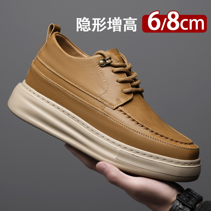 内は高くなって工装の靴の男性の金の8cm2025新型の本革の通気性のカジュアルな靴の厚い底は高くなって板の靴の男性の靴を高めます。