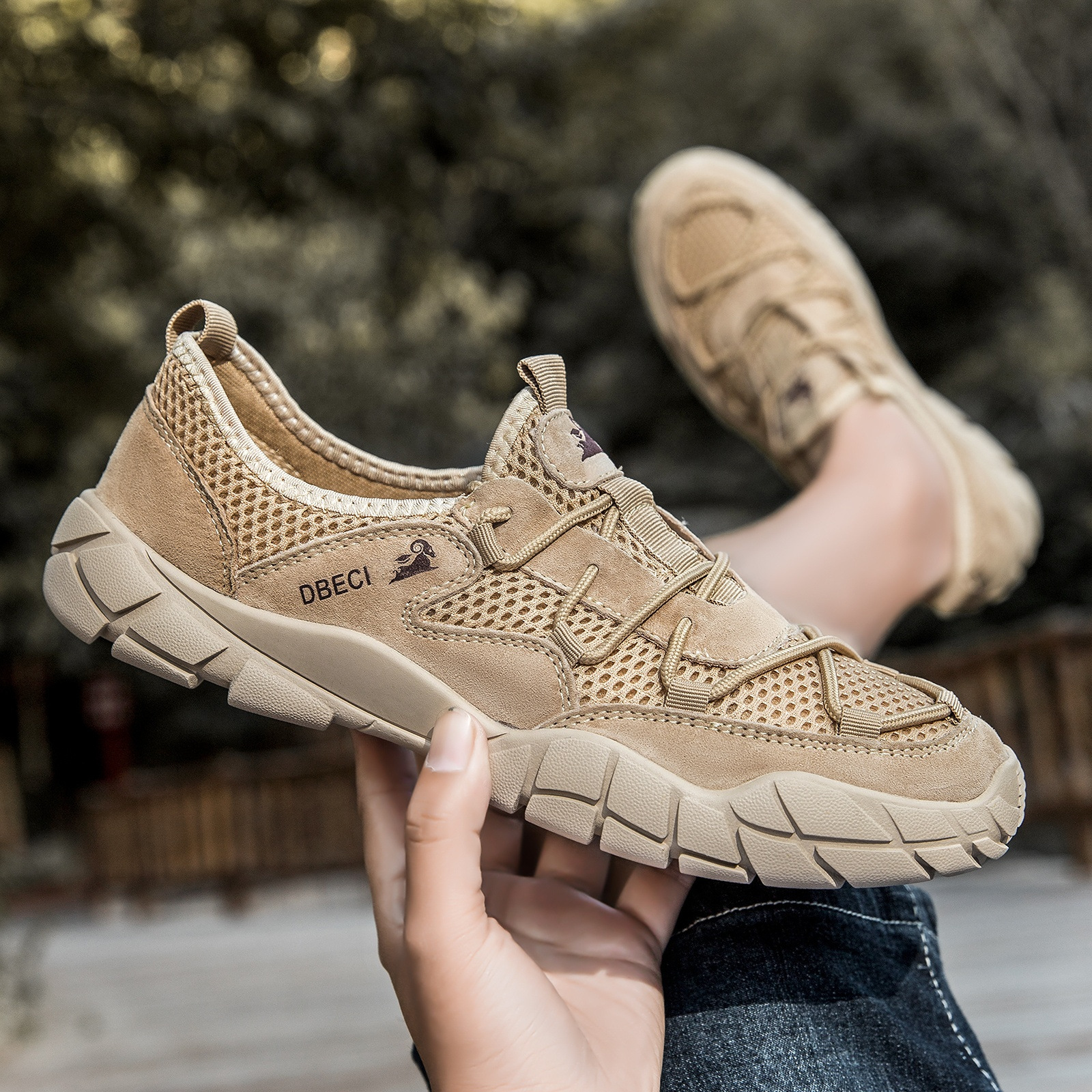 男性靴2024新型ファッションネット面通気レジャースポーツシューズ屋外で滑り止め耐摩耗性工装登山靴