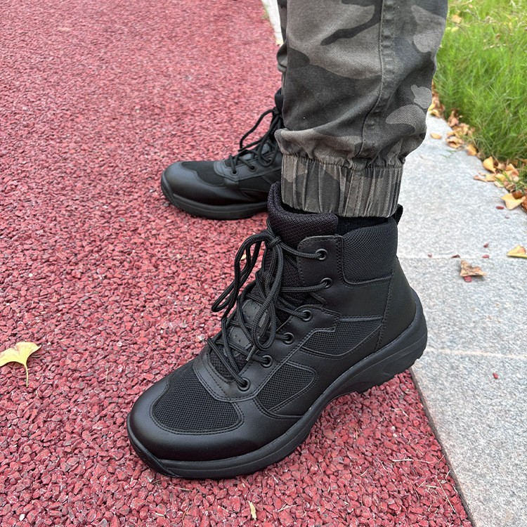 新しい船トレーニングシューズメンズ夏メッシュ快適で通気性のある黒のミッドトップジッパーアウトドアスポーツトレーニングブーツ