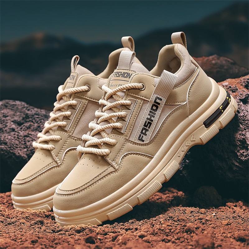 厚い底の工装の靴の男性の2024新型の本革の平底のカジュアルな革靴の男性の潮流の日本の板の靴の百合は高くなります。