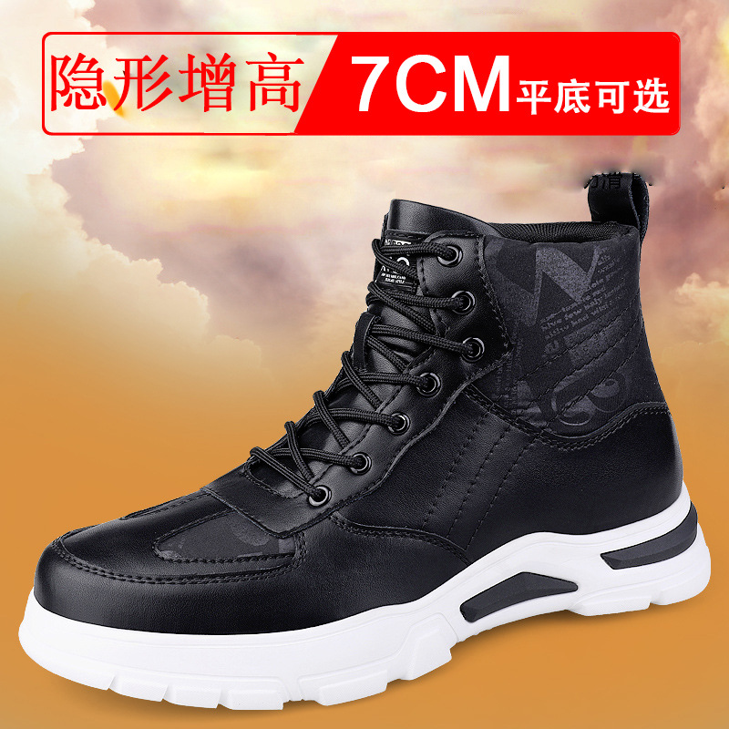 男靴高助工装ステルス内増高靴男7cmカジュアルおじさん靴増高靴白靴スポーツシューズ