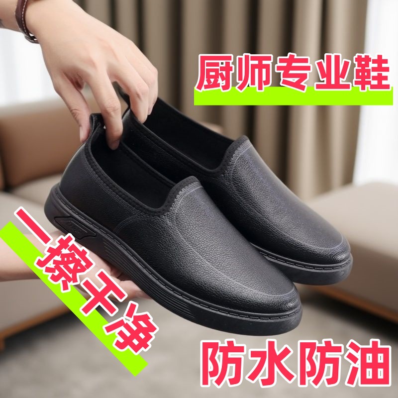 メンズシューズ、キッチンシェフシューズ、ソフトソール、ソフト表面、耐摩耗性、軽量カジュアルレザーシューズ、男性用ワークシューズ