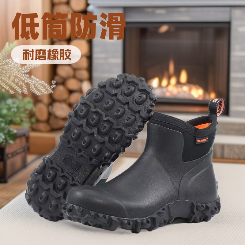 SBR Niu Brown ローカットメンズラバーレインブーツ屋外防水釣りロートップ作業靴滑り止め耐摩耗性ラバーブーツ