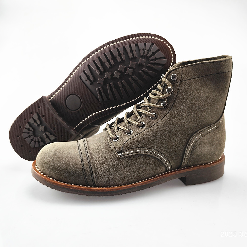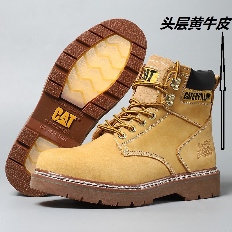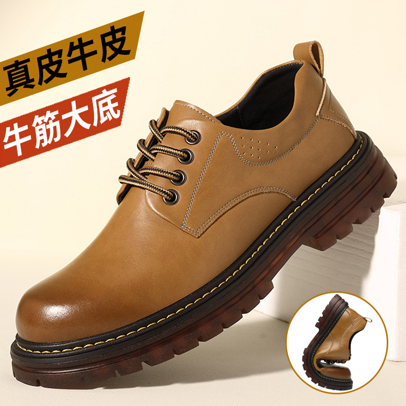 工装靴男2025春の新型高品質低組大黄靴頭層豚皮復古厚い底カジュアル男靴