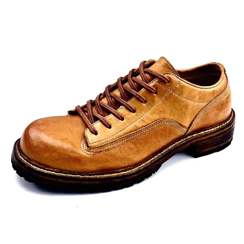 グッドイヤー馬革オールドレザーシューズ英国風カジュアルシューズ厚底ウォッシュド馬革紳士靴ロートップレトロワークシューズ