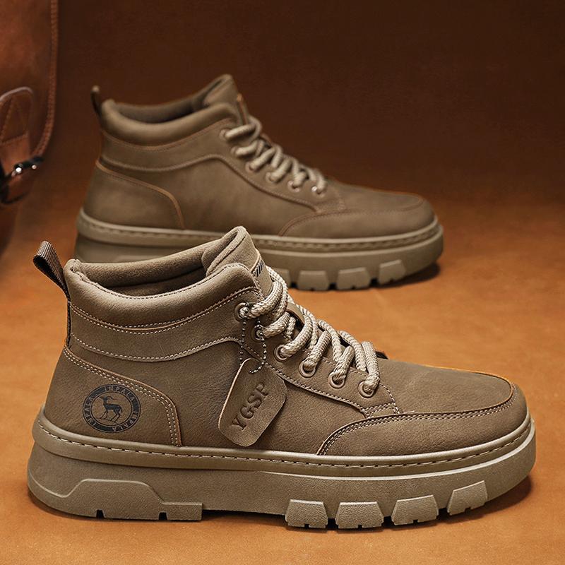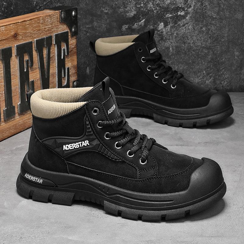 Men'sshoes2024年新型四季通気登山靴厚い底滑り止め工装靴ひも丸首男性