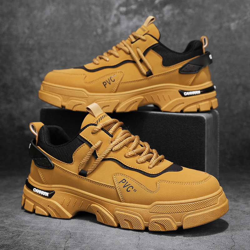 秋冬の新型工装靴のカップルの本革の大きい頭の革靴の大きい黄色の靴の高い靴の男性の靴の英倫のカジュアルシューズ