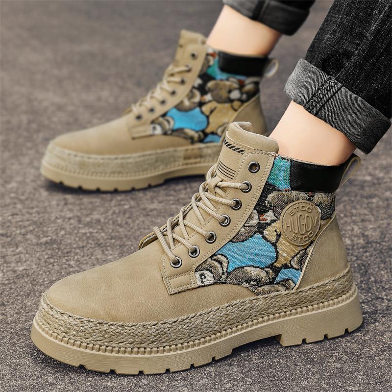 ファッションの熊の落書きのズックの板の靴の男性のファッションのレジャーのマーティンの靴の韓国版のファッションのショーの項の高い男性の靴を手伝います。