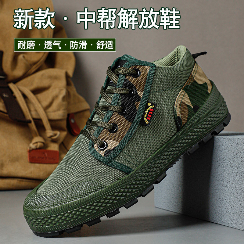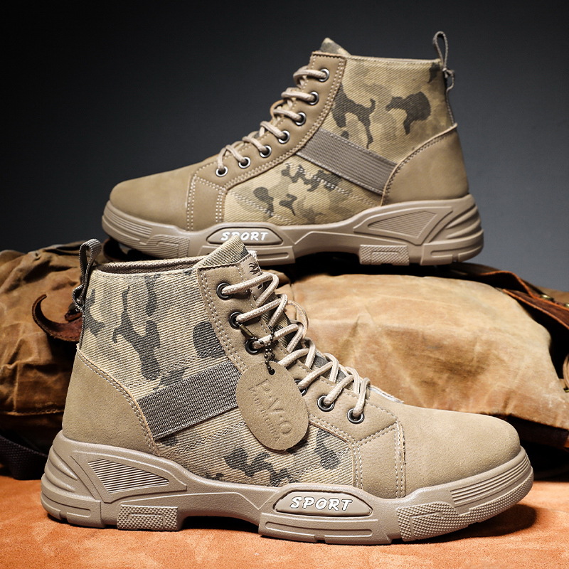 戸外高組迷彩靴男通気耐摩耗ゴム大底労働保険仕事靴登山救助三防解放靴