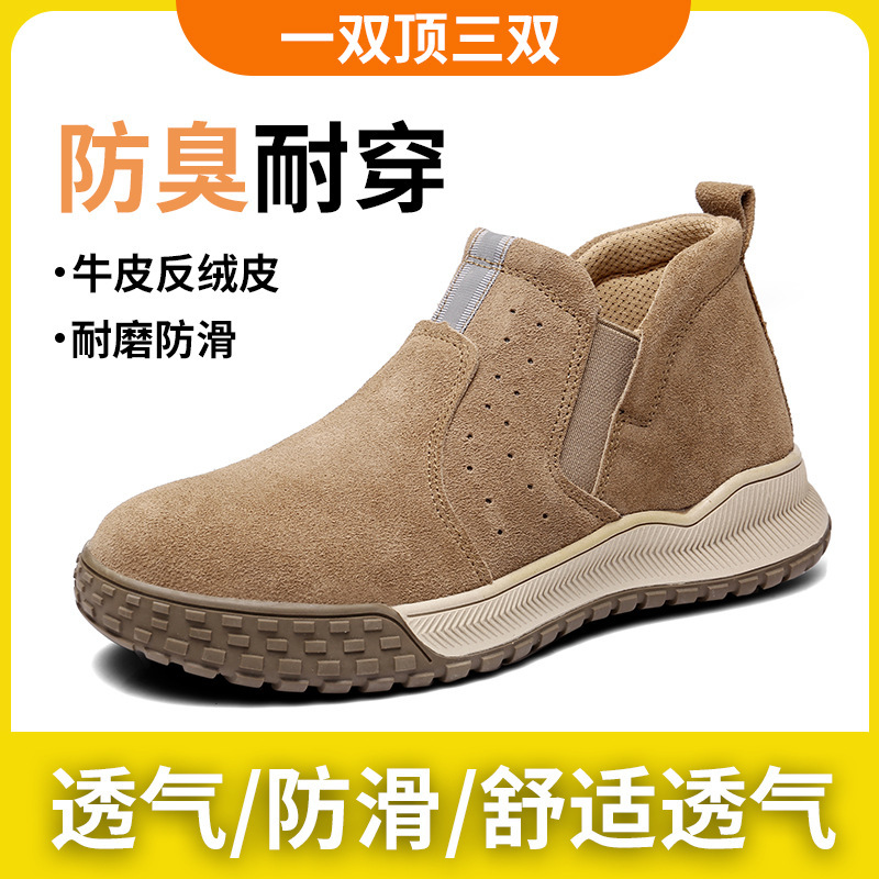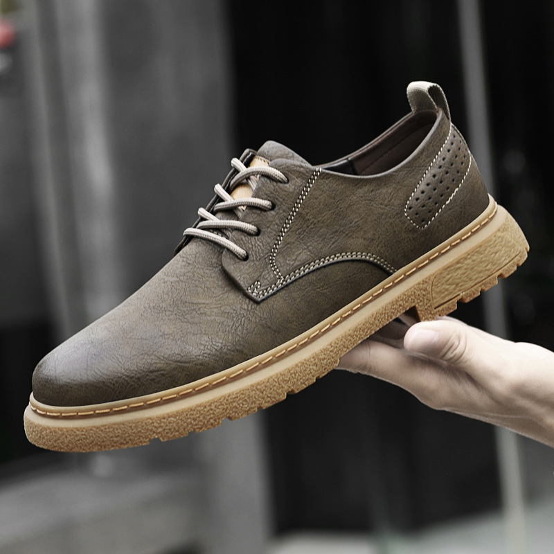 国境を越えた人気のAmazonオゾン作業靴メンズアウトドア包頭本革紳士靴ソフトソール滑り止めロートップカジュアルシューズ