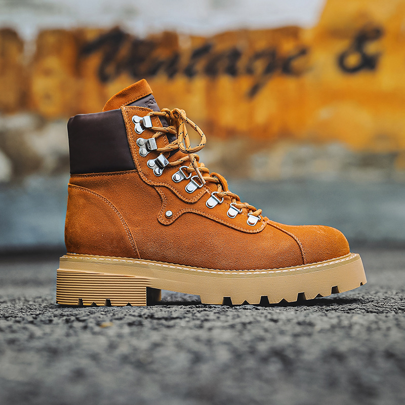 2630カップル大黄靴小黄靴高助マーティン靴工装靴大頭機関車靴秋冬越境