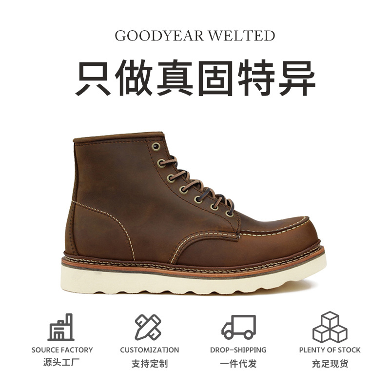 1907固特異頭層牛革男復古マーティンブーツ屋外通気性耐摩耗靴靴スポット卸売り