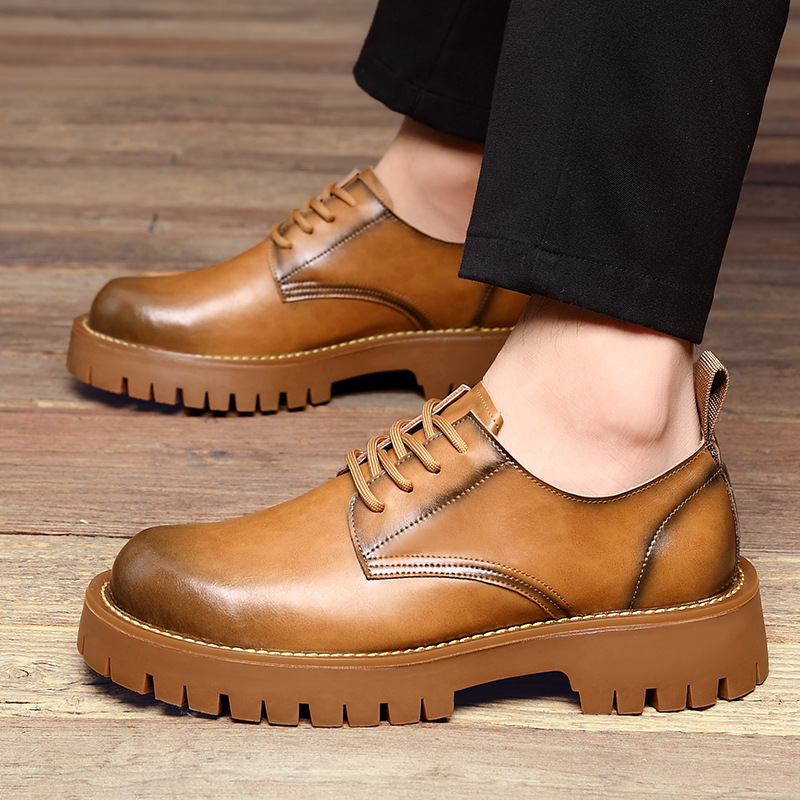 秋の新型男性の日常レジャー靴男の通気性のあるレトロな厚い底の滑り止め工装靴