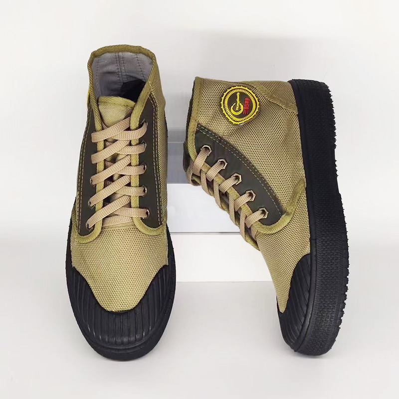 解放靴、布靴、男女労働保護ゴム靴、滑り止め建設現場迷彩靴、ハイカット耐摩耗性トレーニング布靴、黄色スニーカー