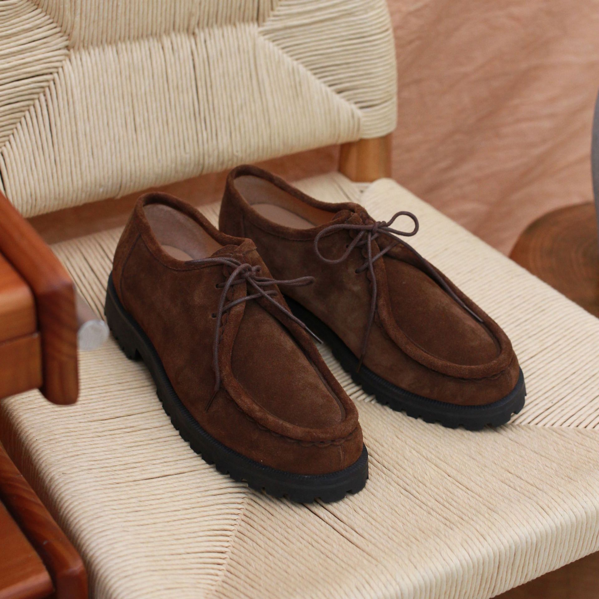 2025 クロスボーダーホットスタイル独立系作業靴メンズロートップレースアップ厚底ボートシューズメンズカジュアルレザーシューズ L サイズ 46
