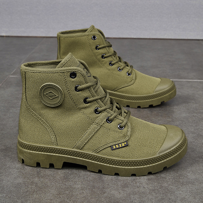 解放靴メンズ耐摩耗性労働保護ゴム靴労働軍事訓練キャンバス滑り止めファッションカジュアルマーティンシューズドロップシッピング