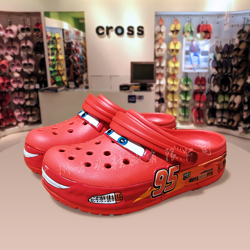 クロス子供の穴の靴95自動車のフラッシュスターのプリントの外で大きい子供のビーチの靴の頭のスリッパのサンダルを着ます。
