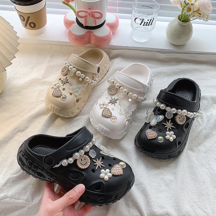 女性用クロックス、夏のアウターウェア、人気の厚底滑り止め2025包頭スリッパ、ビーチで快適に履けます。