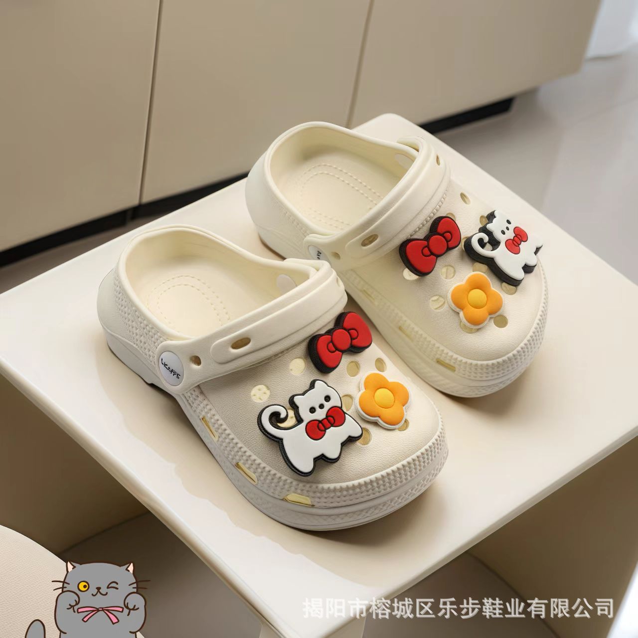 かわいい漫画のリボン KT 猫包頭スリッパ女の子の外出用ツーウェア軽量ソフトソール滑り止め下駄