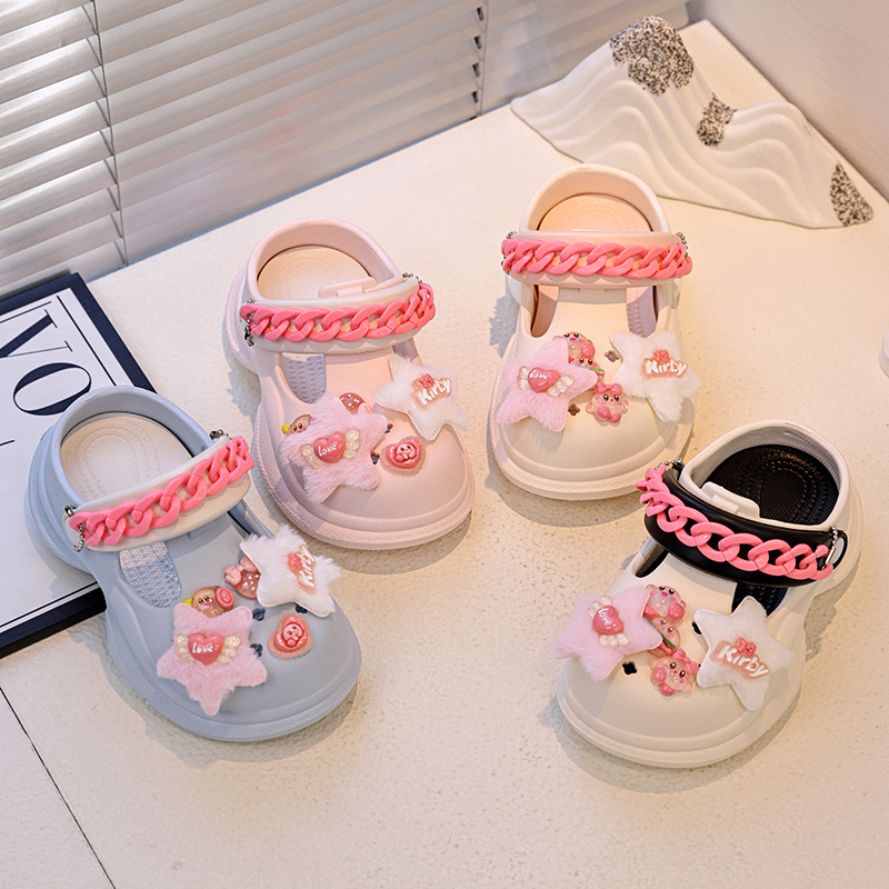 子供用スリッパ女の子夏の新しいかわいい漫画の下駄中型と大型の女の子のアウターウェア包頭ビーチサンダル