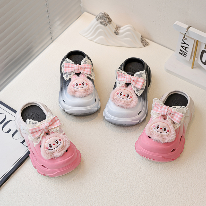 女性用下駄、子供用かわいい漫画の厚底増加つま先スリッパ、女の子用夏用滑り止めサンダル