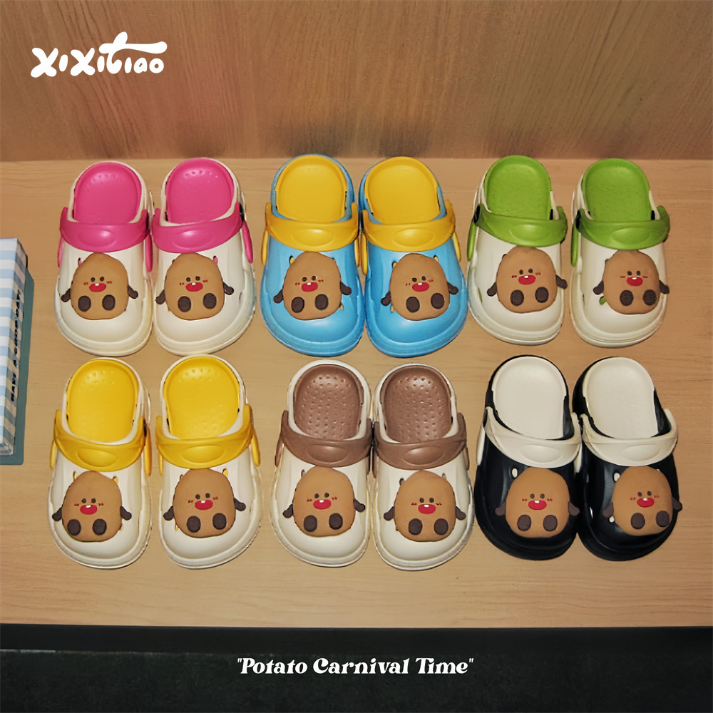 男の子と女の子の親子かわいいポテトサンダル新しいカジュアル子供の漫画ファッションソフトソールつま先ホールシューズ夏