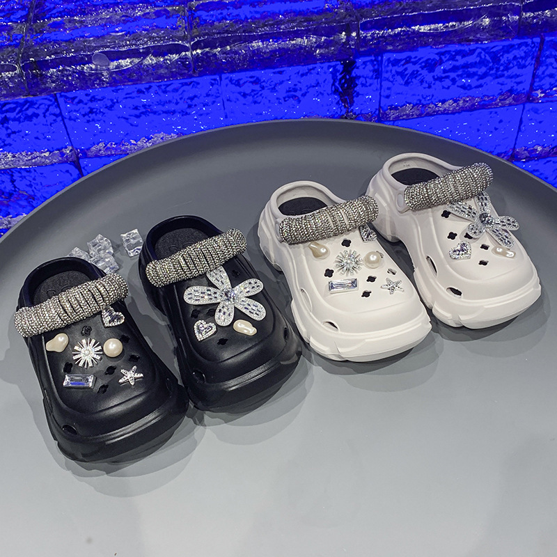 男の子と女の子向けの多用途な親子スリッパ、新しい漫画の中空蝶クリスタルフラワーホールシューズ、柔らかい底、滑り止めつま先サンダル