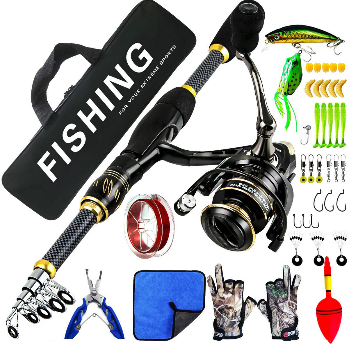 FTK 海釣り竿セット 55点セット 1.8m 伸縮式ルアーポータブルセット 初心者向けソフトベイト鯉釣りセット