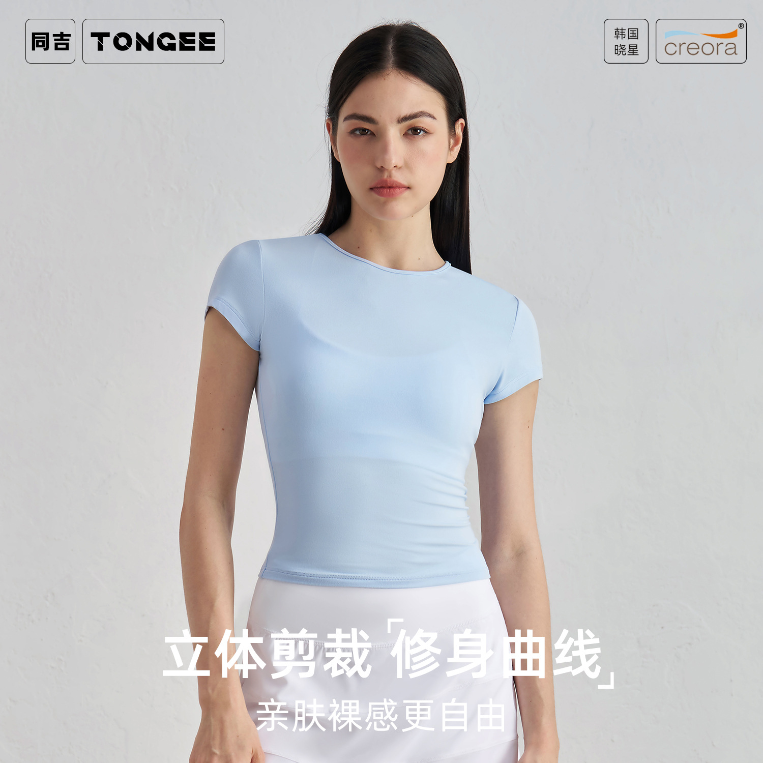 愛度SNUレジャースポーツ半袖ウエストスリム通気ヨガtシャツランニングトレーニング裸感フィットネス上着女性