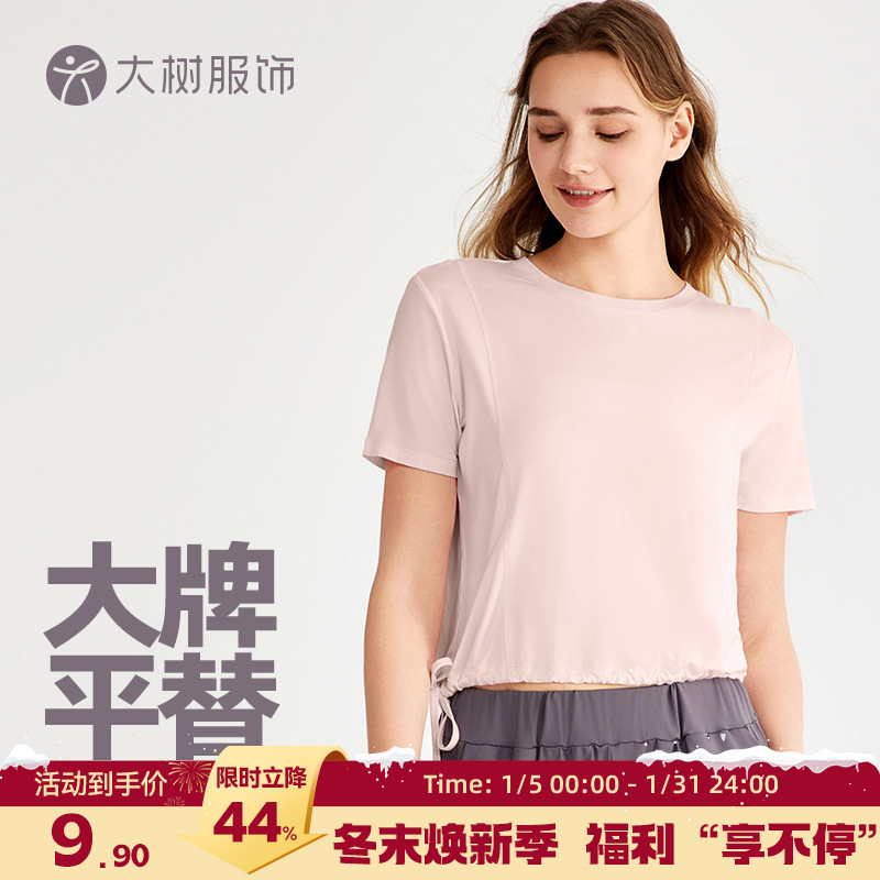 云感ソフトモチゆるいスポーツトップス半袖レディース裾引きひも通勤ショートTカジュアルフラットヨガ服tシャツ