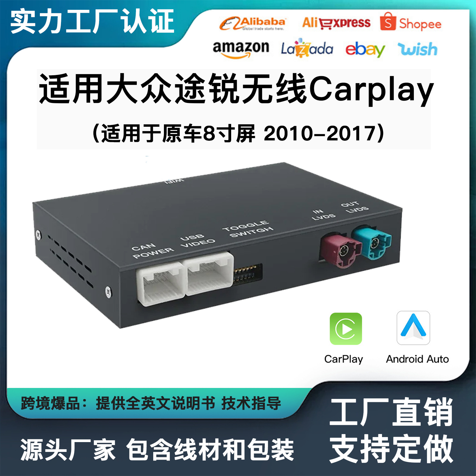 国境を越えて人気の高い有線から無線へのCarplay2in1車載機連携スマートプラグアンドプレイAndroid Auto