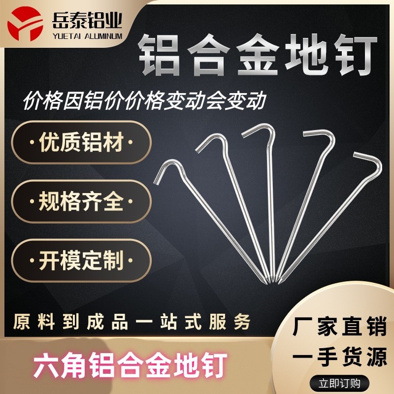工場直販 アウトドアテント・キャノピーアクセサリー 穴付き三角形・六角形アルミ合金地釘、問号型・丸型地釘