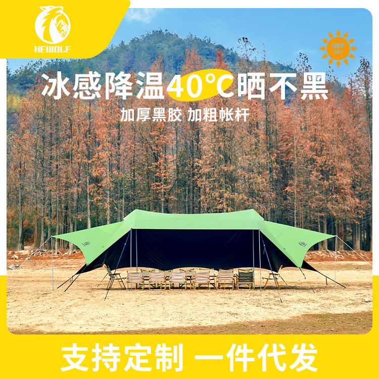 公狼アウトドア双峰雲頂天幕テント8-20人キャンプキャンプ大型黒ゴム日焼け止め天幕日除け棚