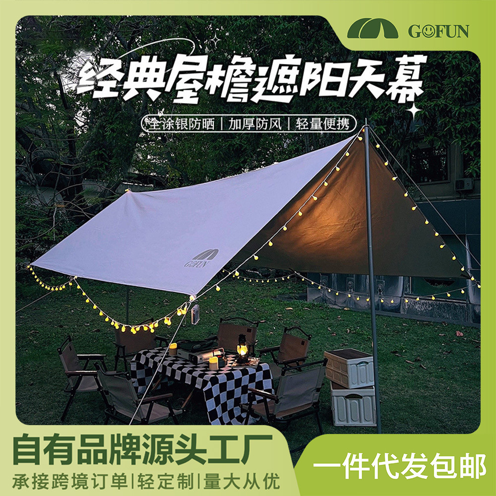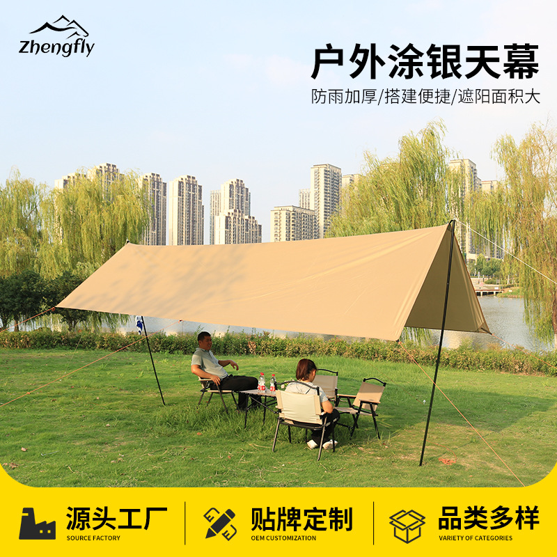 天幕屋外キャンプピクニック防雨日焼け止め黒ゴム天幕野炊飯装備銀塗りサンシェードキャンプテント