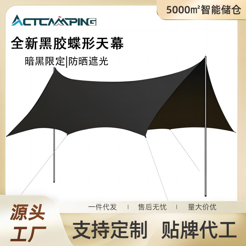 屋外レジャー黒ゴム天幕蝶形軽量化ピクニックキャンプ野炊飯防雨日焼け止め日除けキャンプ装備