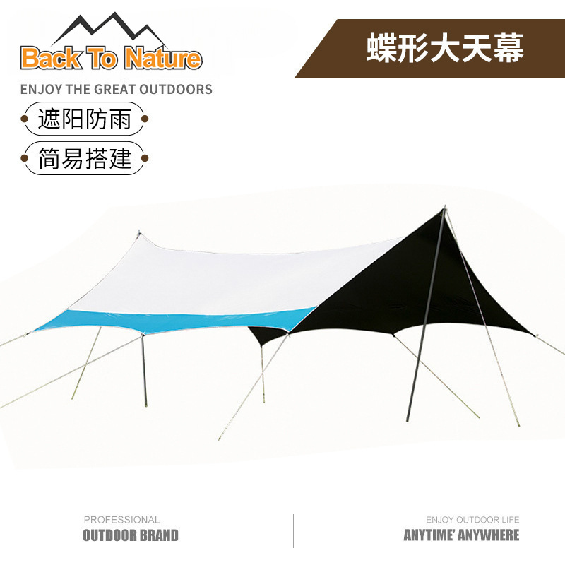 アウトドアキャンプビニールバタフライキャノピー防雨サンシェードパーゴラキャンプシルバーコーティングされた日焼け止めキャノピーキャンプ用品