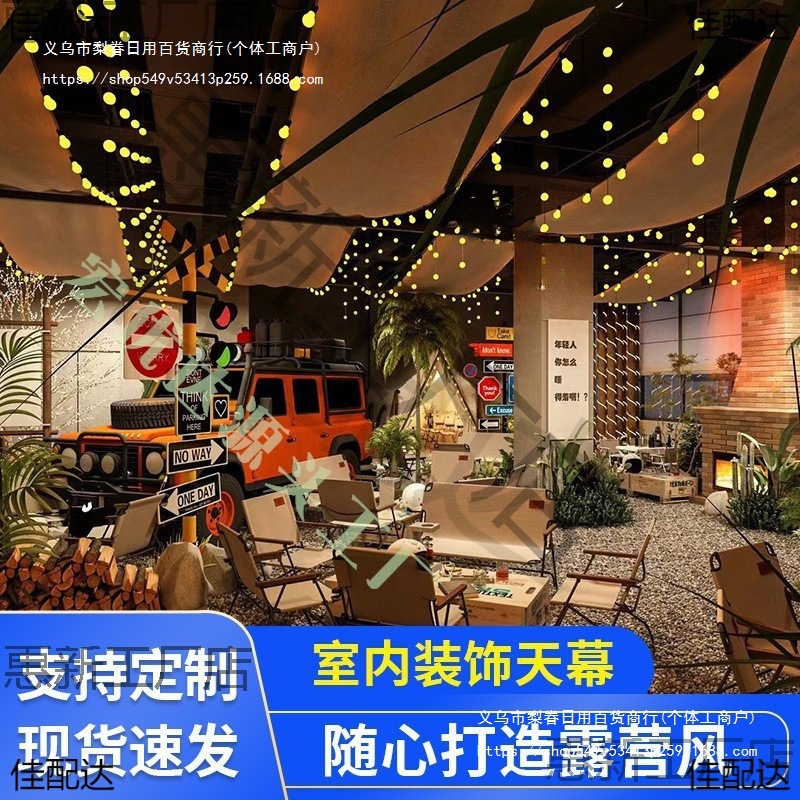 屋内インターネット有名人キャノピーキャンプスタイルバーパブ装飾雰囲気天井吊り布テントストリップサンシェード布装飾