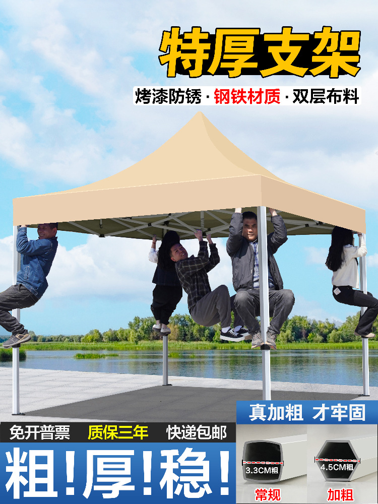 四隅テントトップ布日焼け止め屋外広告厚みのある3×3日よけと雨よけ四角い屋台の雨よけ四本脚傘布