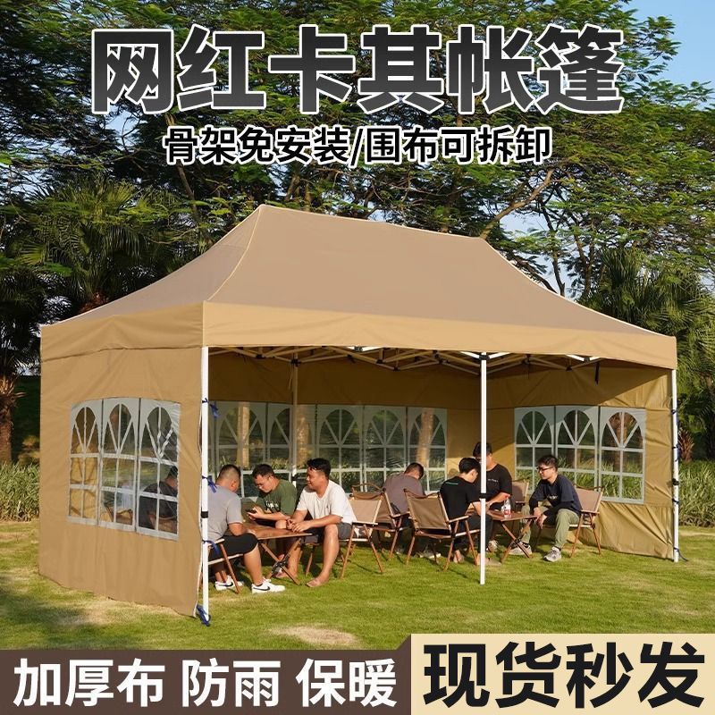 売れ筋モデル】屋外屋台用四脚傘テント、屋外カーキ大型傘カーポート、雨よけ、四隅日よけ