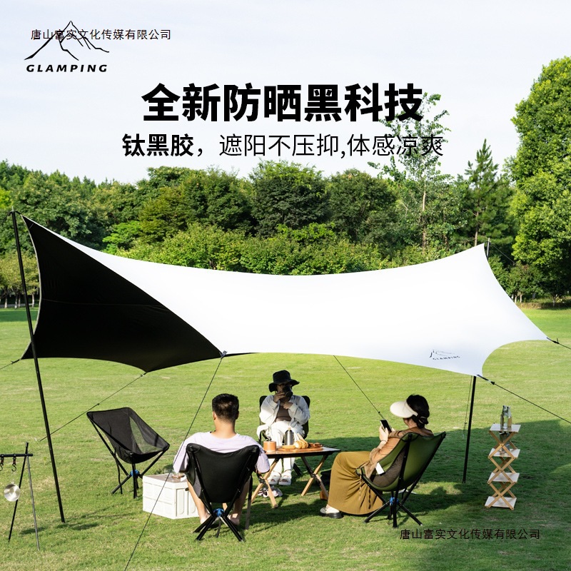 Ttアウトドア厚手黒ゴム天幕キャンプテントセットバタフライ型防雨日よけ天幕日よけ傘黒ゴム天幕