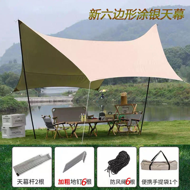 アウトドアレジャー日焼け止め六角キャノピーシルバービニールピクニックキャンプテント多人数キャンプ用品ビニールキャノピー卸売