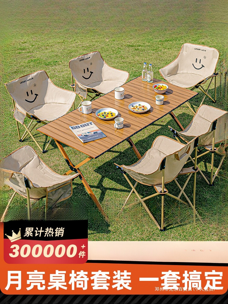 Yumi 屋外折りたたみエッグロールテーブルキャンプテーブルと椅子ポータブルピクニック用品フルセット椅子とテーブルオールインワンセット