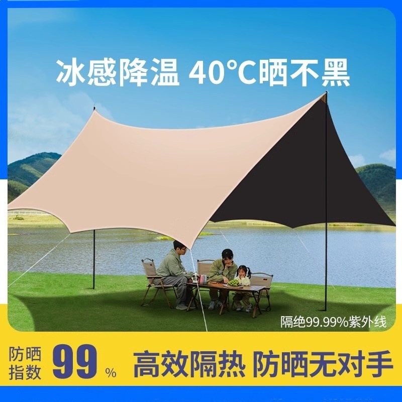 クロスボーダーダブテールキャノピー黒色ビニール日焼け止めテント屋外日よけ無料キャンプ用品キャンプバタフライキャノピー