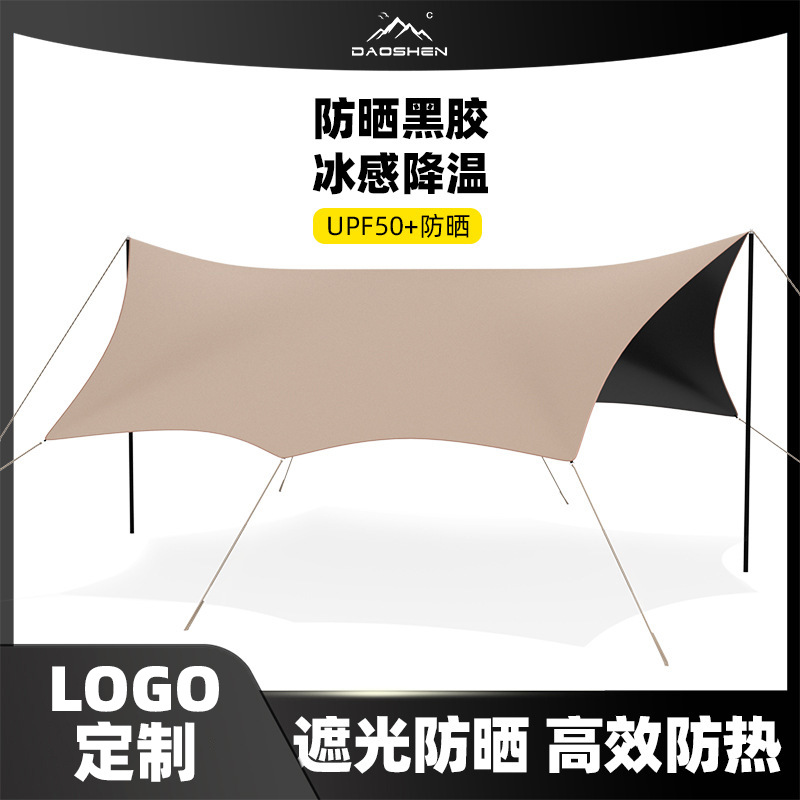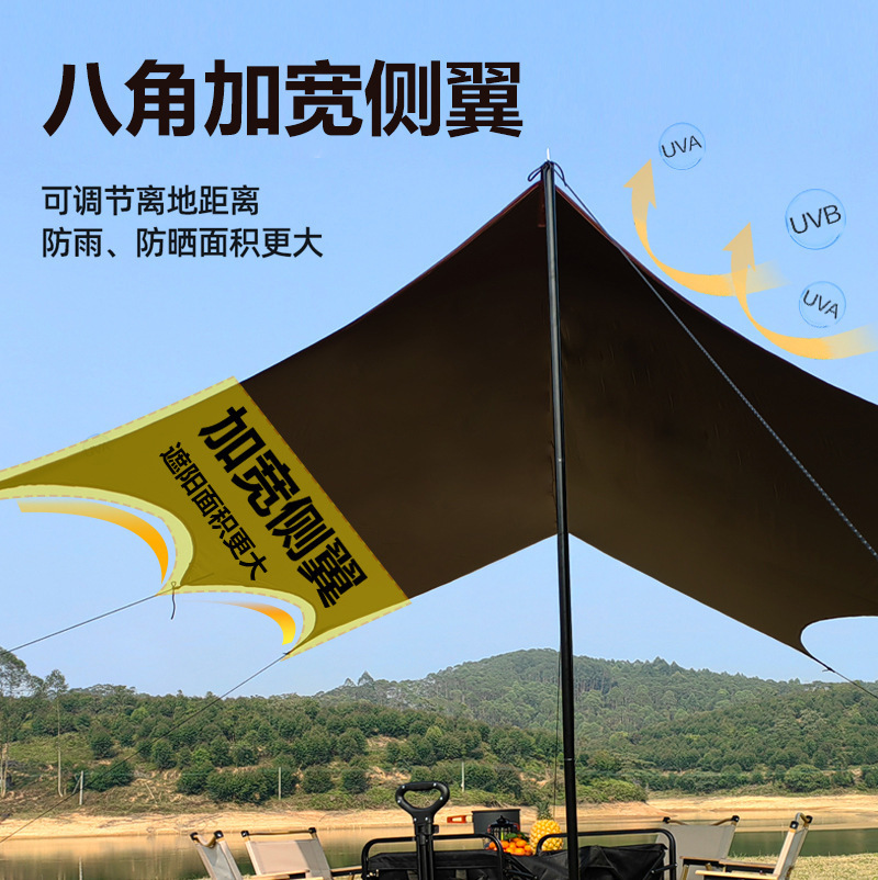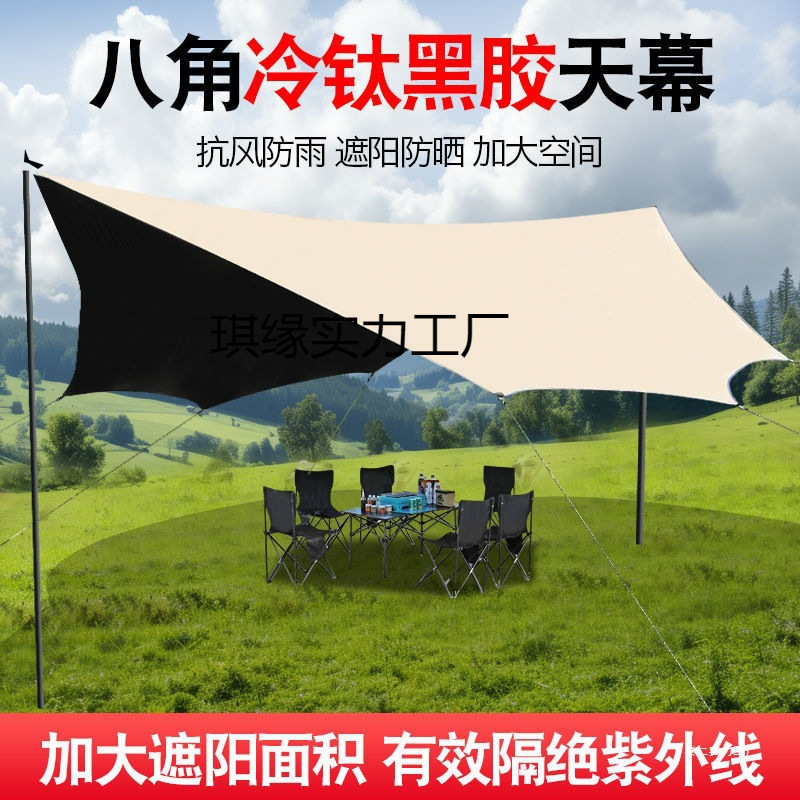 厚い黒ゴム天幕防水テント屋外防雨日焼け止めキャンプ携帯キャンプ八角形蝶形日除け棚