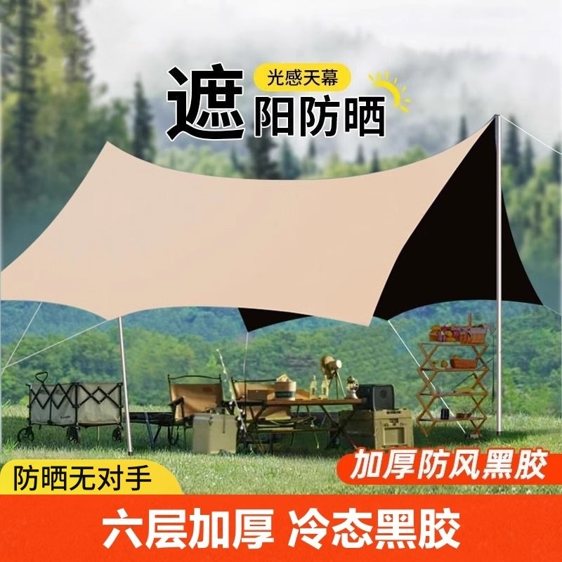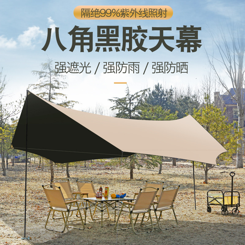 黒ゴム天幕テント屋外キャンプ携帯型日焼け止め防雨凉棚ピクニックキャンプ蝶形六角日除け棚