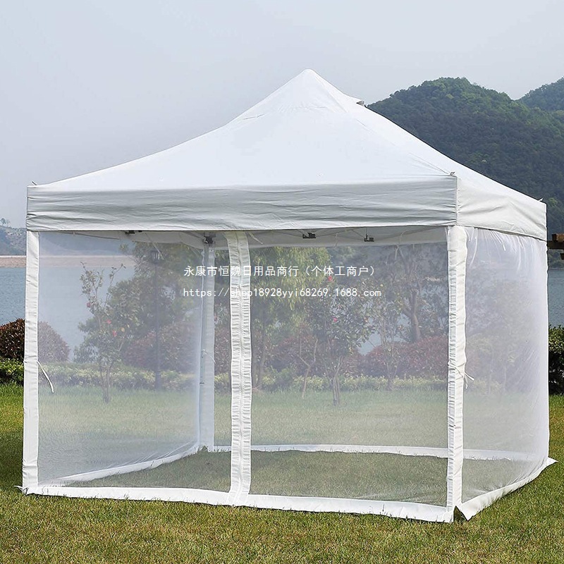 户外遮阳篷防蚊帐帘子白色广告篷网罩纱四脚折叠棚围布透气门车篷