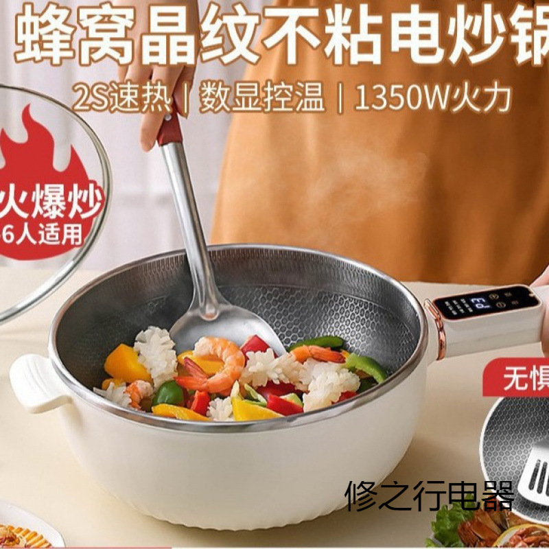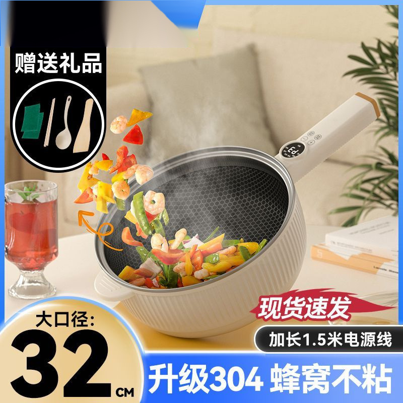 ハニカム電気中華鍋、多機能電気調理鍋、寮家庭用ハイパワー蒸し、炒め、揚げオールインワンノンスティック電気鍋