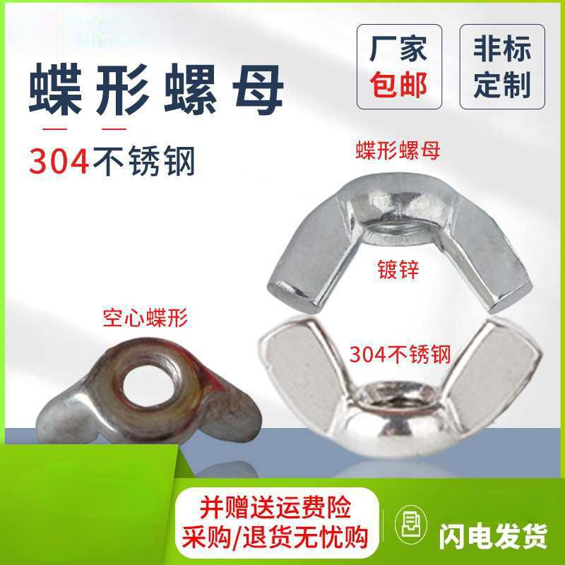 304ステンレスバタフライナット201ステンレス羊角手ねじりナット亜鉛メッキ蝶型皿母元宝ナット
