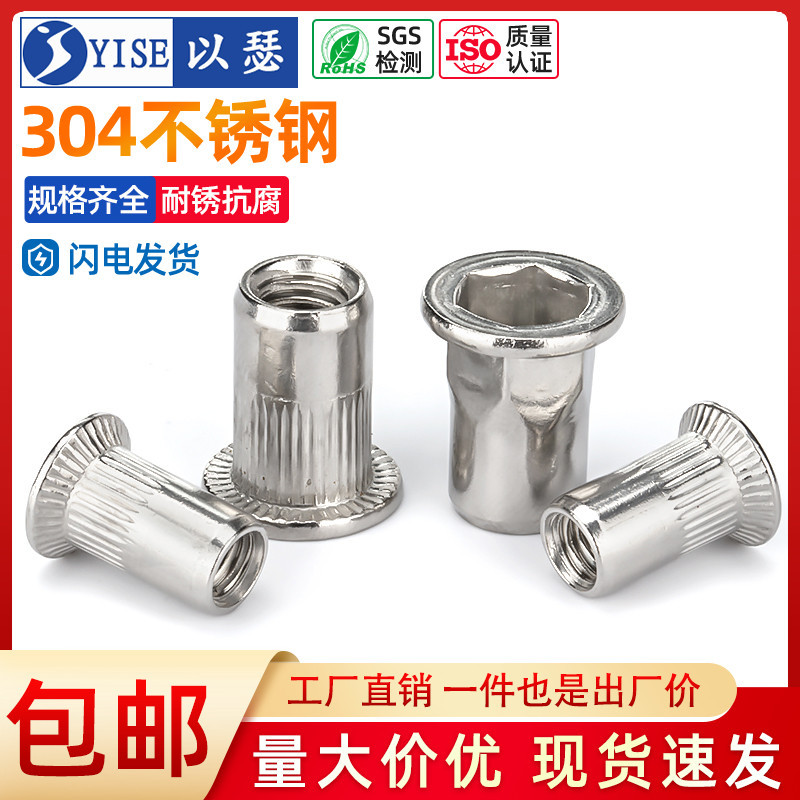 304ステンレスプルリベットナットアルミ製平頭縦紋プルキャップ沈頭拉卯柳ナットm4 m 6m 8m 10