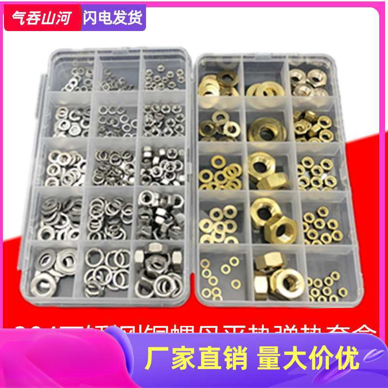 Diyセット銅ナットワッシャー304ステンレスフラットワッシャー混合セット家庭用金物修理部品
